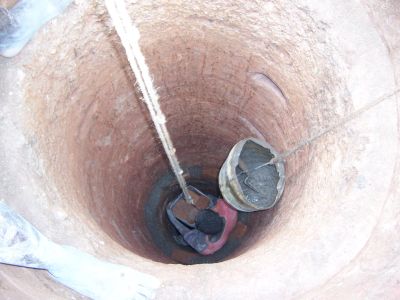 eerst met de lokale bevolking waar de tien waterputten gegraven kunnen